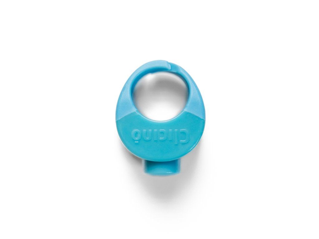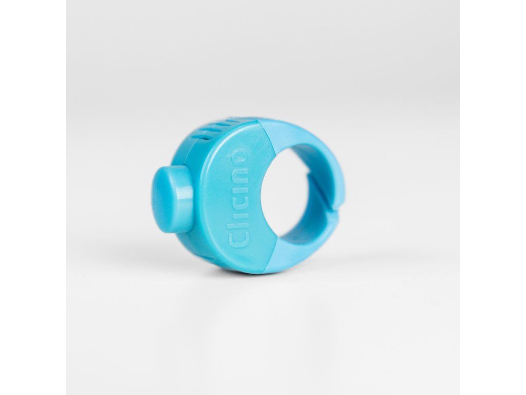 Prstýnky Clicino® jsou k dostání ve čtyřech velikostech. Vrchní část klikru je z lesklého tvrdého plastu a spodní část z matného měkkého plastu. Měkká část je uprostřed šikmo přerušená, klikr se tak jemně přizpůsobí Vašemu prstu. Zároveň Vás neskřípne a není nijak nepohodlný.